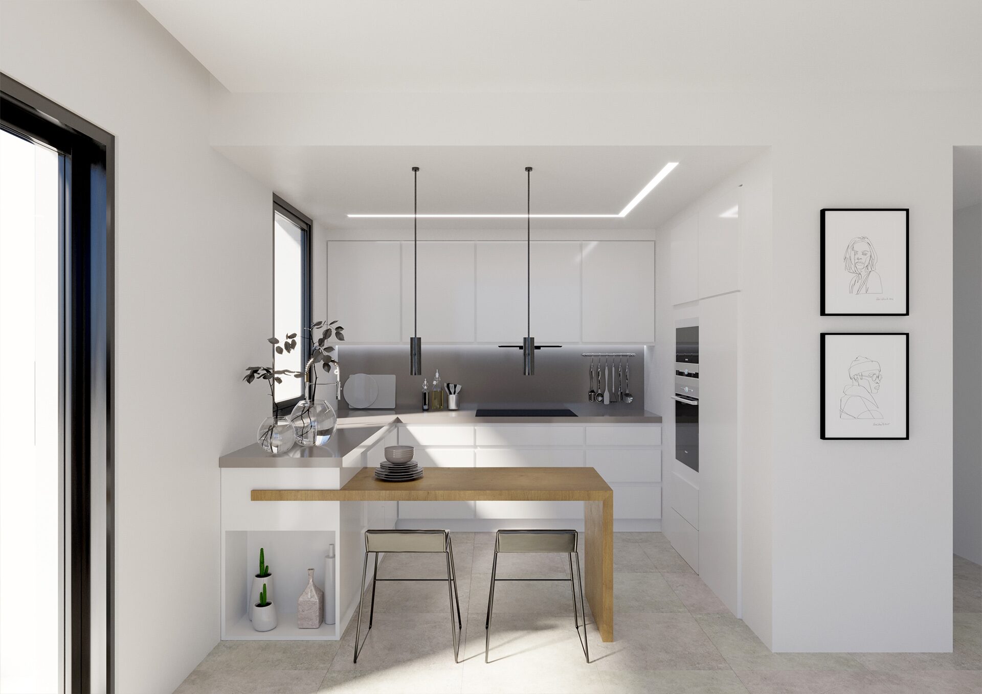 El interior de estas viviendas está diseñado con un enfoque en la comodidad y la tecnología moderna. Los suelos de cerámica y porcelanato aportan un toque elegante y fácil de mantener. Las persianas eléctricas y el sistema de domótica ofrecen un control total sobre el ambiente interior, mientras que el aire acondicionado asegura el confort durante todo el año. Las cocinas están equipadas con electrodomésticos de última generación, facilitando la vida diaria. Los armarios empotrados proporcionan un amplio espacio de almacenamiento, y la posibilidad de cargar vehículos eléctricos en el garaje es un plus para los propietarios de coches eléctricos. Cada propiedad incluye 2 baños, diseñados con un estilo contemporáneo y funcional.