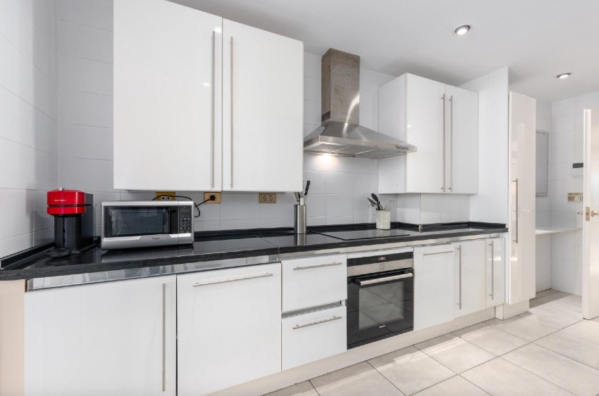 Junto a la sala de estar y el comedor, encontrará una cocina independiente totalmente equipada que inspirará su creatividad culinaria. Diseñada con la funcionalidad en mente, la cocina cuenta con modernos electrodomésticos y un amplio espacio en el mostrador, por lo que es ideal para preparar comidas para disfrutar al aire libre en la terraza. Tanto si organiza cenas como si prepara una comida familiar, esta cocina satisface realmente las necesidades de un estilo de vida contemporáneo.