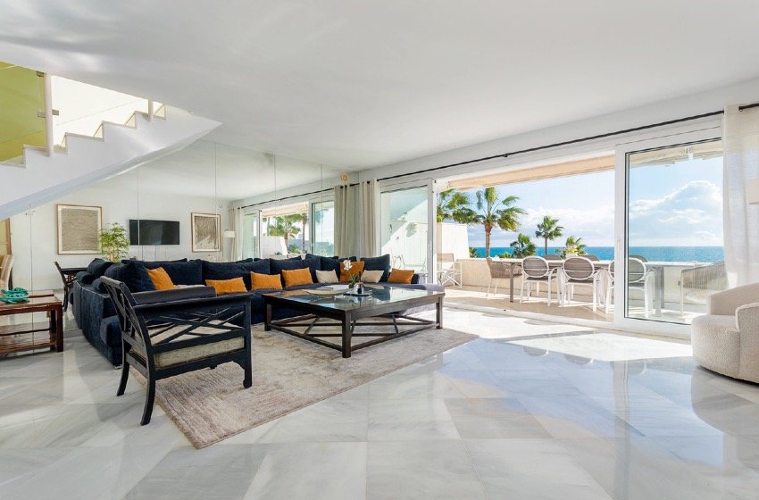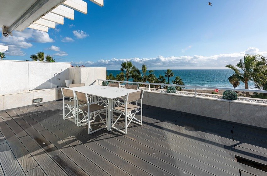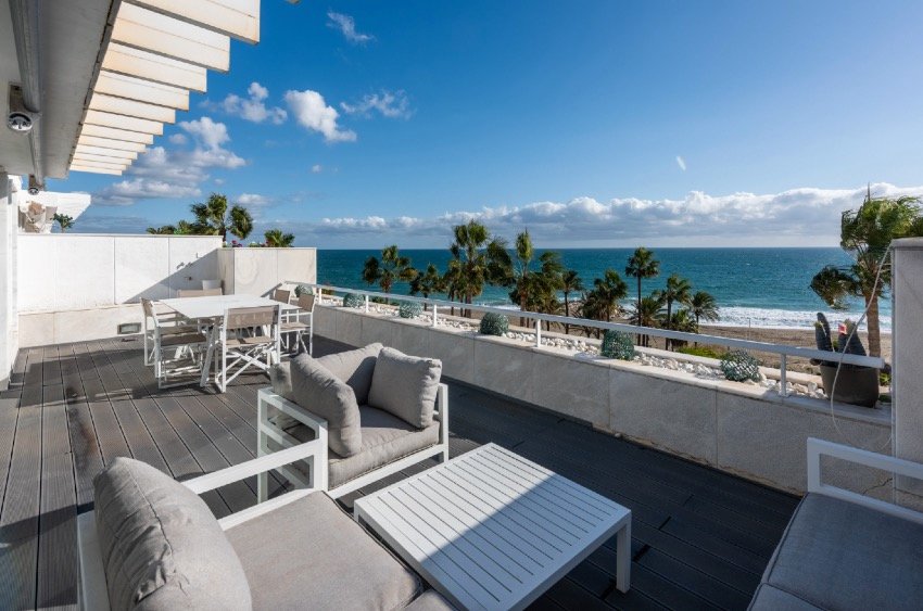 Ático-dúplex de 3 dormitorios en Puerto Banus, Marbella en primera línea de playa con piscina privada y preciosas vistas al mar. Si está buscando una casa de ensueño que combine la impresionante belleza de Marbella con un lujo sin igual, no busque más: disponible para alquiler  exquisito ático dúplex en primera línea de playa. Abarcando una extensa área y presumiendo de espectaculares vistas al mar, esta propiedad de tres dormitorios está diseñada para aquellos que aprecian tanto el espacio como la elegancia.
