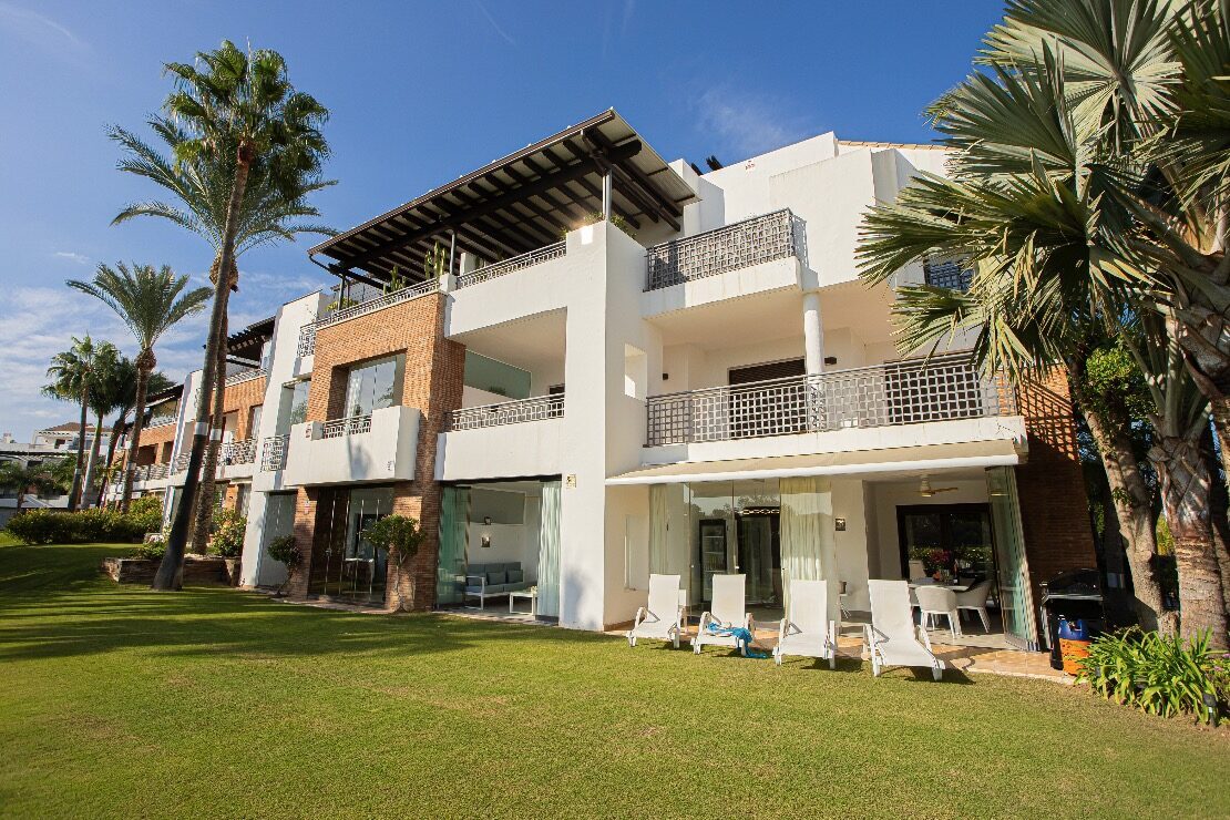En una de las urbanizaciones más selectas y cuidadosamente mantenidas de la zona, se presenta esta extraordinaria vivienda en planta baja, diseñada para quienes buscan un hogar que aúne lujo, tranquilidad y una ubicación privilegiada. El complejo, completamente cerrado y de impecable presentación, ofrece amplias zonas ajardinadas, una piscina comunitaria para adultos, otra destinada a niños y modernas pistas de pádel, creando un entorno inigualable para disfrutar del clima y el estilo de vida mediterráneo.