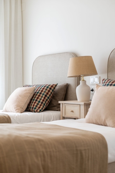 El interior de las viviendas está cuidadosamente diseñado para ofrecer confort y funcionalidad. Los suelos de gres porcelánico aportan un toque de elegancia y durabilidad, mientras que las persianas eléctricas añaden un nivel extra de comodidad. Las cocinas están completamente equipadas con electrodomésticos modernos, facilitando el día a día de los residentes. Los armarios empotrados en los dormitorios proporcionan un amplio espacio de almacenamiento, manteniendo el orden y la organización. Cada detalle ha sido pensado para ofrecer un hogar acogedor y práctico, adaptado a las necesidades contemporáneas.