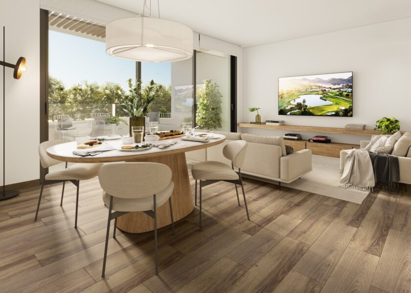 El interior de las viviendas se caracteriza por su diseño contemporáneo y funcional. Con opciones de 2 y 3 dormitorios y 2 baños, cada espacio está optimizado para ofrecer confort y eficiencia. Los suelos de gres porcelánico aportan un toque de elegancia y durabilidad. Los armarios empotrados ofrecen amplio espacio de almacenamiento, manteniendo el orden y la estética. La opción de garaje, disponible según tipología, añade comodidad y seguridad al día a día. La integración de sistemas de domótica permite controlar diversos aspectos del hogar de manera sencilla y eficiente.