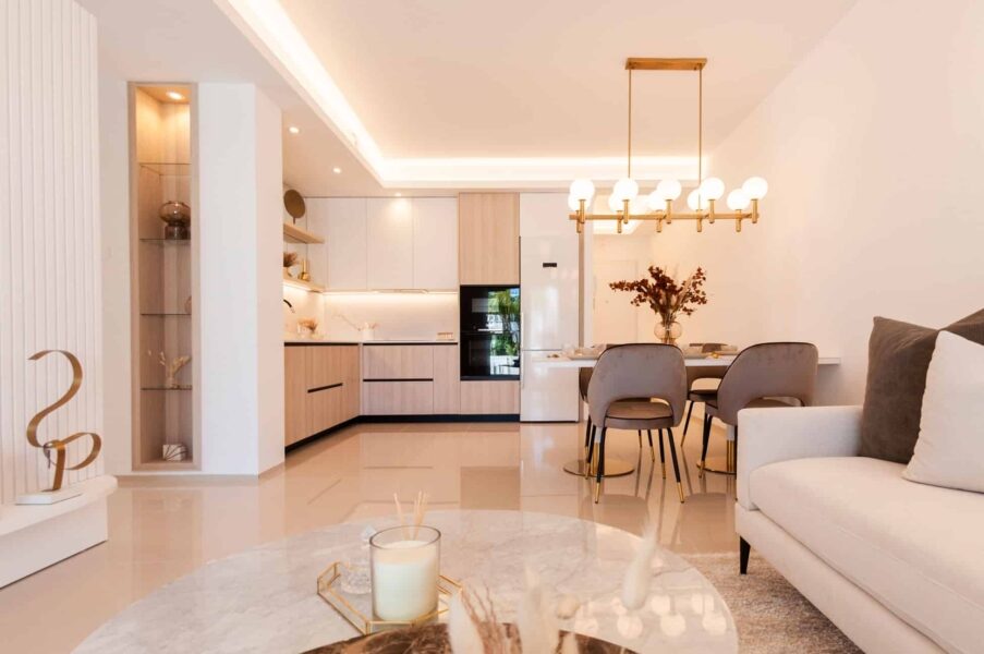 El interior de las viviendas está diseñado para ofrecer comodidad y funcionalidad. Cada propiedad cuenta con 3 dormitorios, lo que proporciona suficiente espacio para familias de diferentes tamaños. Los baños, disponibles en opciones de 2 o 3, están equipados con acabados modernos. Las cocinas están completamente equipadas con electrodomésticos, facilitando la vida diaria. Los armarios empotrados en los dormitorios ofrecen un almacenamiento eficiente, manteniendo el espacio ordenado y libre de desorden. Además, algunas propiedades incluyen un jacuzzi, añadiendo un toque de lujo y relajación al hogar.