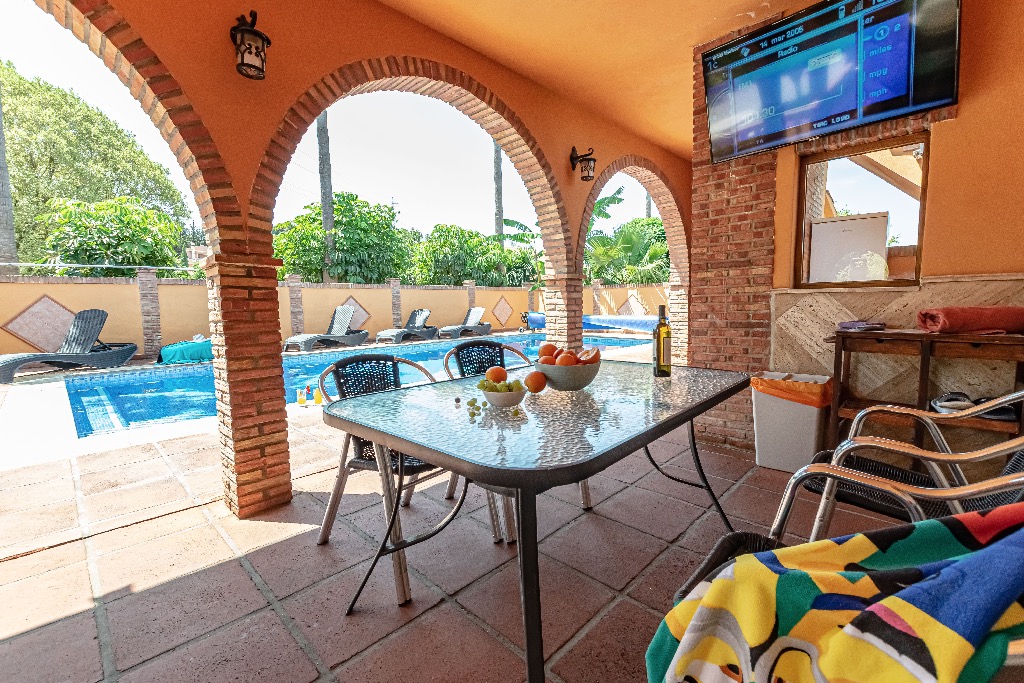 No menos relevante es la piscina, que se convierte en el centro neurálgico en los cálidos días de verano, proporcionando un oasis privado donde relajarse y disfrutar del clima típicamente soleado de la región. La casa también ofrece aparcamiento para varios coches, accesible a través de una puerta automática que añade un nivel de comodidad y seguridad.
