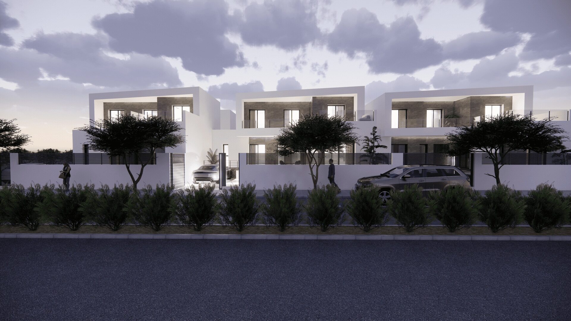 El interior de los adosados está cuidadosamente diseñado para ofrecer comodidad y estilo. Con tres dormitorios y tres baños, cada vivienda está equipada para satisfacer las necesidades de familias o parejas que buscan espacio y privacidad. Los suelos de gres porcelánico aportan un toque moderno y son fáciles de mantener, mientras que los armarios empotrados en los dormitorios ofrecen soluciones de almacenamiento prácticas y elegantes. La distribución incluye un garaje, asegurando un espacio seguro para el vehículo y almacenamiento adicional.
