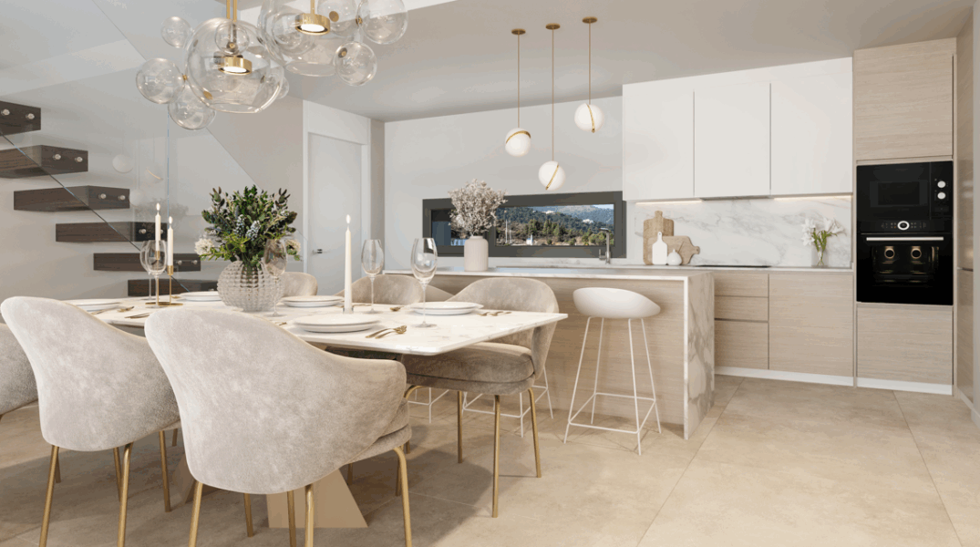 Entre en estos exclusivos pisos de 3 dormitorios en Benahavis y encontrará una combinación perfecta de estilo y funcionalidad. Cada dormitorio tiene baño privado, con acceso a la terraza para traer el aire libre al interior. Las cocinas completamente equipadas cuentan con muebles de diseño y electrodomésticos de bajo consumo, lo que hace que la preparación de las comidas sea muy sencilla. Con materiales de alta calidad y atención al detalle en todas partes, estos apartamentos ofrecen una experiencia de vida como ninguna otra.