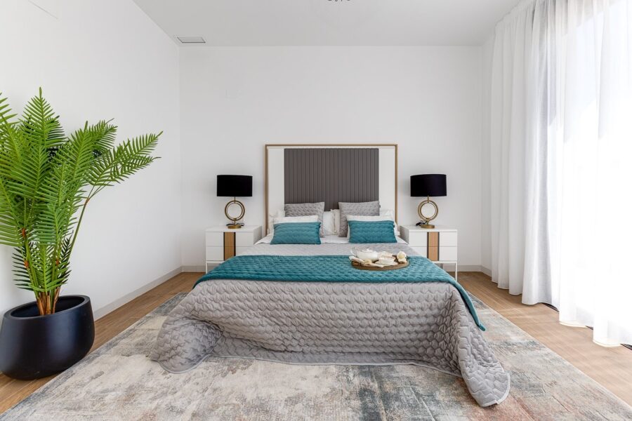 El interior de estas viviendas independientes está diseñado para maximizar el confort y la funcionalidad. Los suelos de cerámica aportan un toque moderno y son fáciles de mantener. La cocina está equipada con electrodomésticos de alta calidad, facilitando las tareas diarias. Las persianas eléctricas y el videoportero añaden un nivel extra de comodidad y seguridad. Los armarios empotrados ofrecen un espacio de almacenamiento eficiente, mientras que la preinstalación de aire acondicionado permite mantener una temperatura agradable durante todo el año.