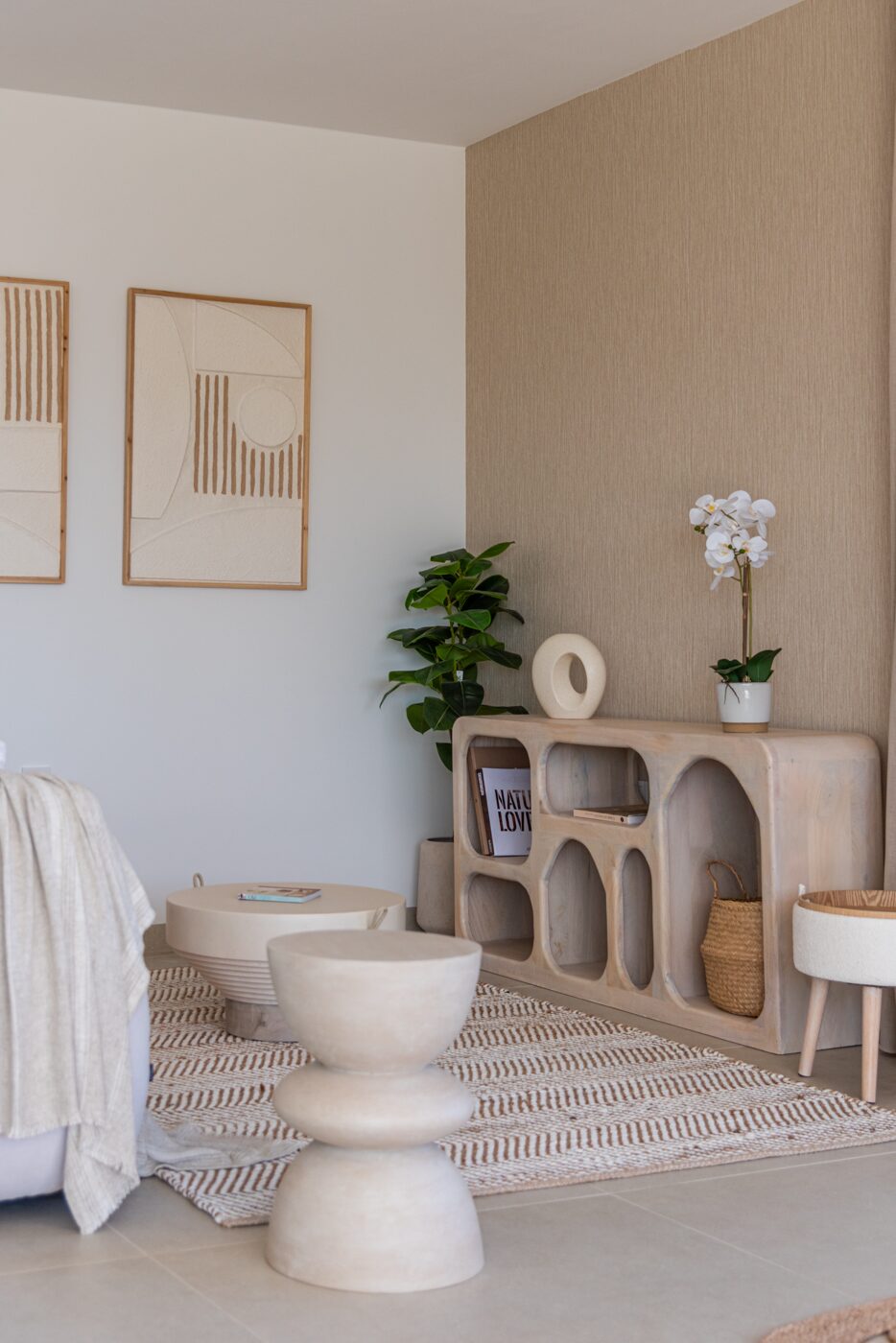 El interior de las propiedades está pensado para ofrecer un ambiente moderno y funcional. Los suelos de cerámica aportan un toque elegante y son fáciles de mantener, mientras que los electrodomésticos integrados facilitan el día a día. Los armarios empotrados optimizan el espacio de almacenamiento, manteniendo el orden y la organización en el hogar. Las opciones de distribución incluyen 2 o 3 dormitorios y 2 baños, adaptándose a diferentes necesidades familiares. La inclusión de terrazas y, en algunos casos, solárium, amplía el espacio habitable, permitiendo disfrutar del clima mediterráneo desde la comodidad del hogar.