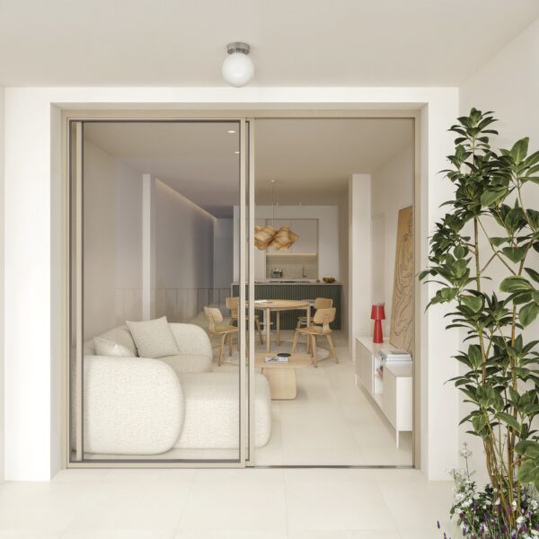 Los interiores de las viviendas están equipados con características modernas que garantizan comodidad y eficiencia. Todas las propiedades incluyen persianas eléctricas, facilitando el control de la luz y la privacidad con un simple toque. La preinstalación de aire acondicionado asegura que los residentes puedan disfrutar de un ambiente fresco y confortable durante todo el año. Además, las viviendas están equipadas con electrodomésticos, proporcionando una solución práctica y lista para entrar a vivir. La distribución interna incluye opciones de dos o tres dormitorios, todos con dos baños, lo que garantiza espacio suficiente para familias de diferentes tamaños. Las amplias terrazas conectan el interior con el exterior, creando un flujo natural de luz y aire.