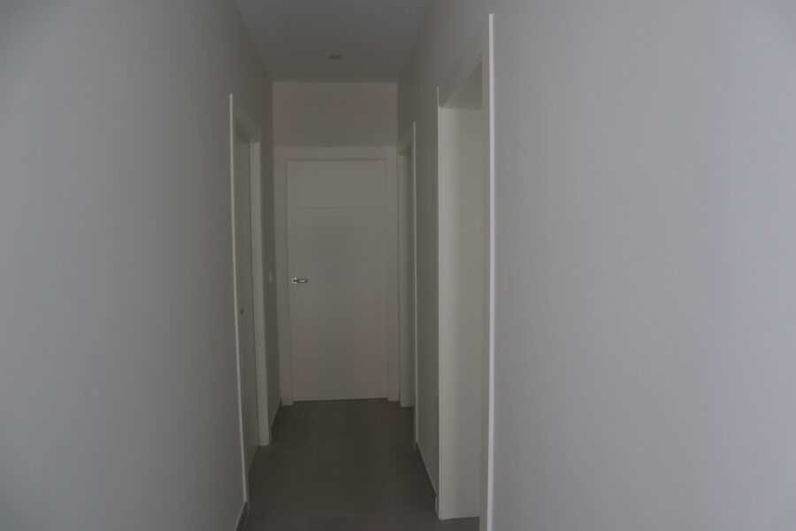 El interior del chalet está cuidadosamente diseñado para ofrecer comodidad y estilo. Dispone de tres dormitorios, lo que lo hace perfecto para familias o para quienes necesitan espacio adicional para invitados o un despacho. Los dos baños están equipados con acabados modernos. El suelo de gres porcelánico aporta un toque elegante y es fácil de mantener. Las persianas eléctricas y el aire acondicionado aseguran un ambiente confortable durante todo el año. La cocina está equipada con electrodomésticos modernos, facilitando las tareas diarias. Los armarios empotrados en los dormitorios ofrecen un amplio espacio de almacenamiento, manteniendo el orden y la organización.