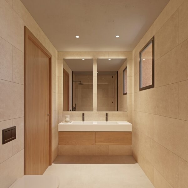 El interior de estas viviendas independientes en Llíber está cuidadosamente diseñado para ofrecer un ambiente acogedor y moderno. Con tres dormitorios y tres baños, cada propiedad está equipada para satisfacer las necesidades de una familia. Los suelos de cerámica aportan un toque elegante y son fáciles de mantener. La calefacción por suelo radiante asegura un confort térmico óptimo durante todo el año. Las viviendas también cuentan con electrodomésticos modernos y un sistema de domótica que facilita el control de diversas funciones del hogar. Los armarios empotrados ofrecen un almacenamiento eficiente, mientras que la posibilidad de cargar vehículos eléctricos en casa añade un nivel extra de conveniencia.