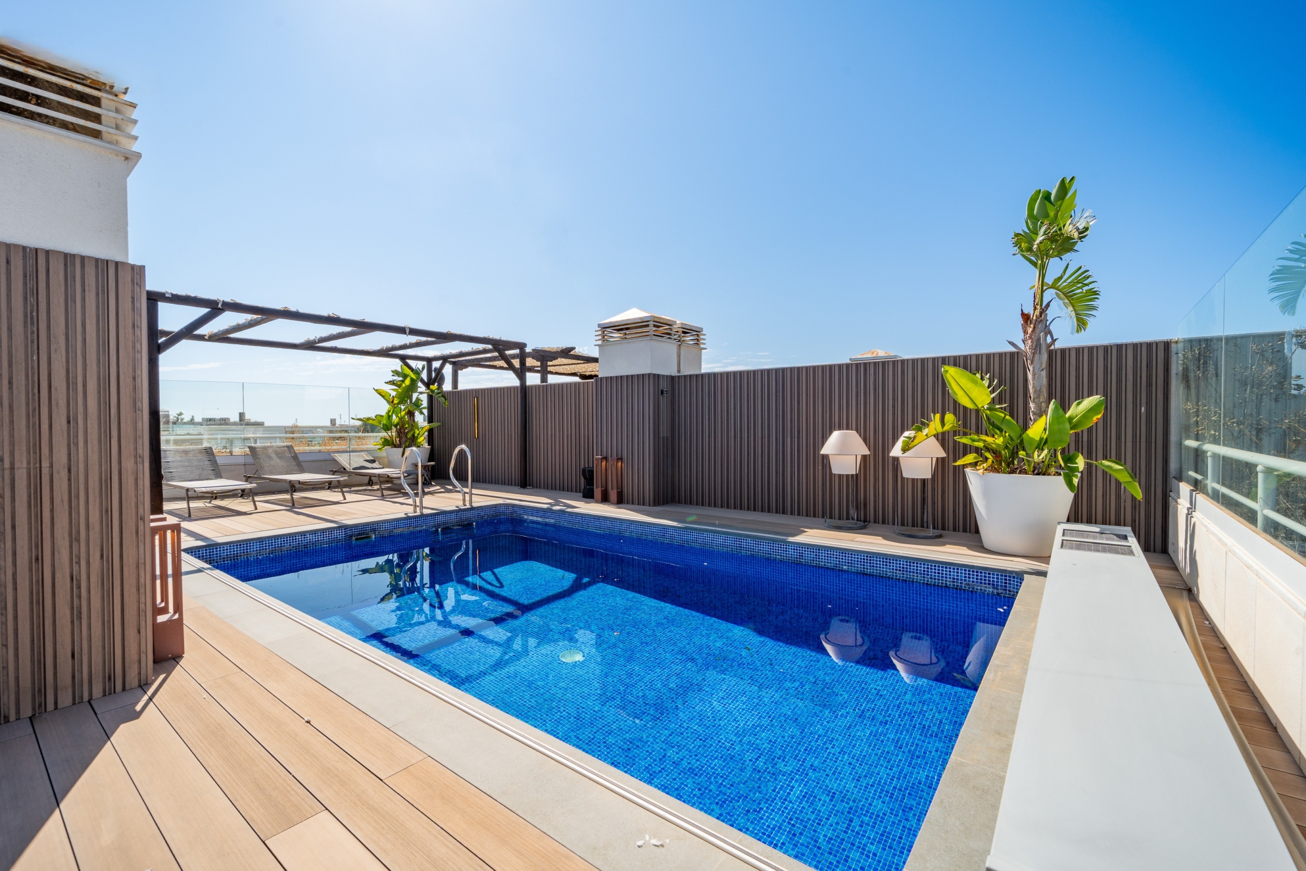 Situado en la exclusiva urbanización Embrujo de Banús, este impresionante ático dúplex es el paradigma de la vida costera de lujo en su máxima expresión. A pocos pasos de Puerto Banús y de la playa, esta propiedad forma parte de una comunidad segura que cuenta con cuidados jardines tropicales, dos piscinas, un gimnasio totalmente equipado, un spa con sauna e hidromasaje y seguridad las 24 horas del día.