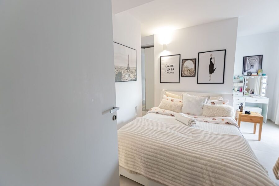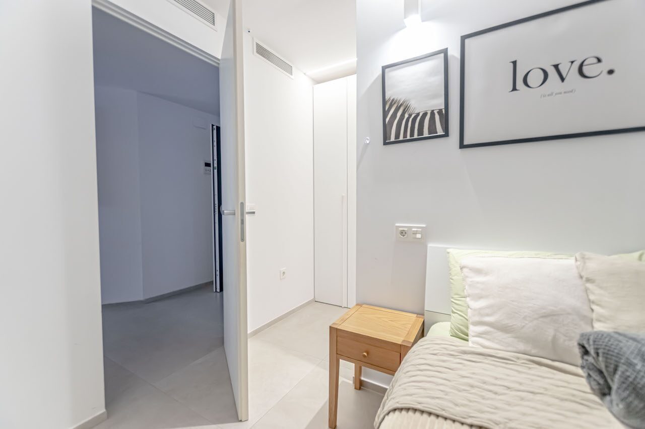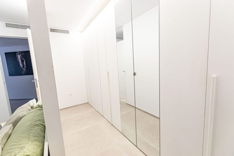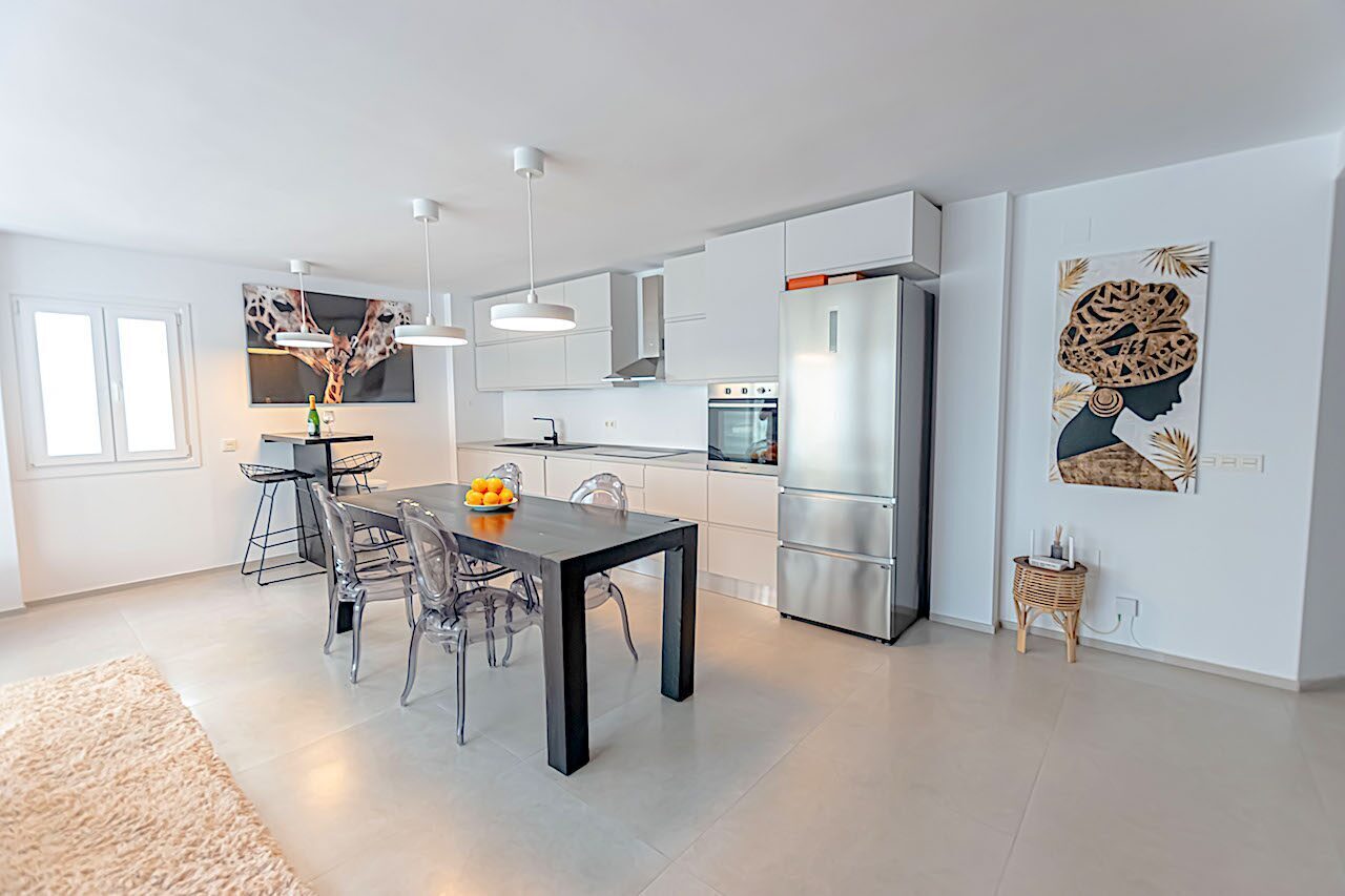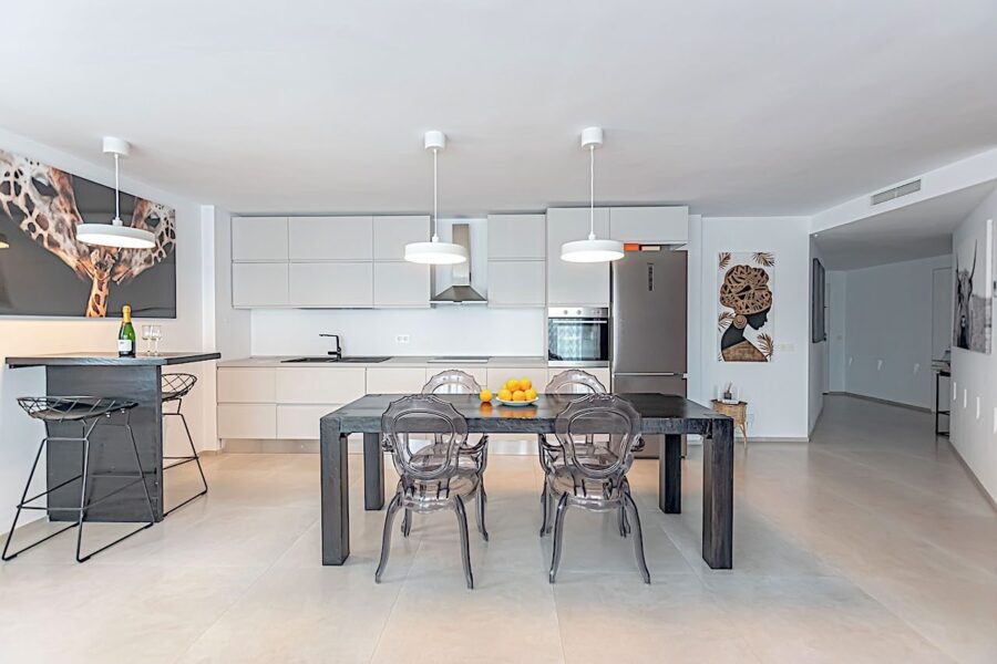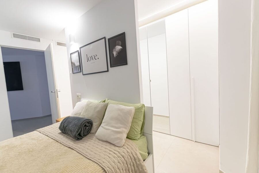 La propiedad se distribuye en dos amplios dormitorios, terraza, balcón y dos modernos baños, ambos equipados con platos de ducha. El espacioso salón de concepto abierto se integra armoniosamente con la cocina, creando un ambiente moderno, funcional y acogedor. Cuenta además con un hall de entrada y un práctico lavadero que aporta mayor comodidad al día a día. Está equipado con aire acondicionado frío/calor y dispone de licencia turística, lo que representa una excelente oportunidad tanto para uso personal como para inversión.