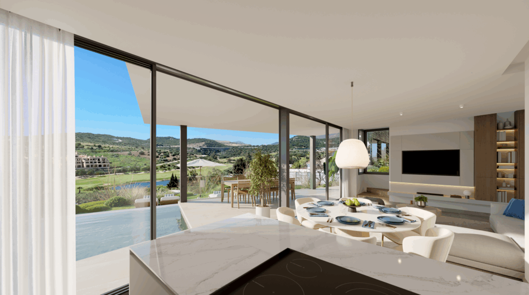 Las casas están diseñadas con líneas limpias, formas funcionales y un enfoque holístico que considera cada elemento: forma, función y materiales. Cada espacio está cuidadosamente optimizado y conectado a la perfección con el exterior a través de amplias terrazas y amplios ventanales, que invitan al clima mediterráneo y a las vistas panorámicas.