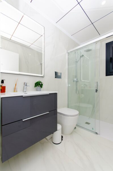 El interior de estas viviendas en Orihuela está diseñado con un enfoque en la comodidad y la funcionalidad. Los suelos de cerámica aportan un toque moderno y son fáciles de mantener. Las viviendas vienen completamente amuebladas, lo que facilita la mudanza y permite disfrutar del nuevo hogar desde el primer día. La cocina está equipada con electrodomésticos de alta calidad, y los armarios empotrados en los dormitorios ofrecen un amplio espacio de almacenamiento. El sistema de aire acondicionado, junto con la preinstalación adicional, asegura un ambiente agradable durante todo el año. Las persianas eléctricas y el videoportero añaden un nivel extra de confort y seguridad.