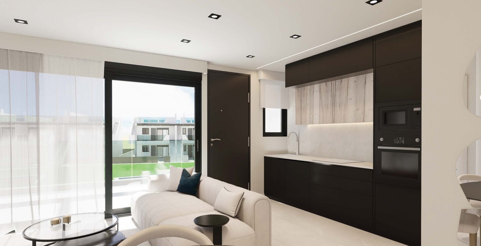 Los exteriores de estos bungalows están diseñados para maximizar el disfrute del clima mediterráneo. Cada propiedad cuenta con un jardín privado, perfecto para crear un espacio verde personal o para disfrutar de momentos al aire libre. Además, las terrazas ofrecen un lugar ideal para relajarse o compartir con amigos y familiares. Para aquellos que buscan vistas panorámicas, los bungalows con solarium incluyen un solárium, proporcionando un espacio adicional para el ocio y el descanso. La cercanía al mar añade un valor especial, permitiendo disfrutar de la brisa marina y de paseos por la playa a solo un kilómetro de distancia.