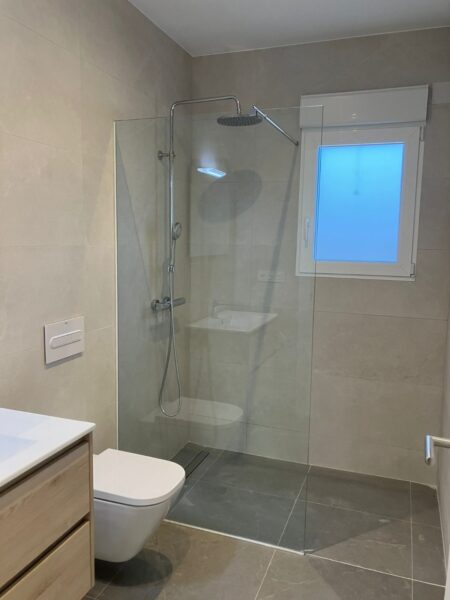 El interior del chalet está diseñado para maximizar el confort y la funcionalidad. Cuenta con tres dormitorios, perfectos para acomodar a toda la familia o para recibir invitados. Los dos baños están distribuidos de manera eficiente para ofrecer comodidad y privacidad. Los armarios empotrados proporcionan un espacio de almacenamiento práctico y elegante. Además, la preinstalación de aire acondicionado asegura que la vivienda esté preparada para mantener una temperatura agradable durante todo el año.