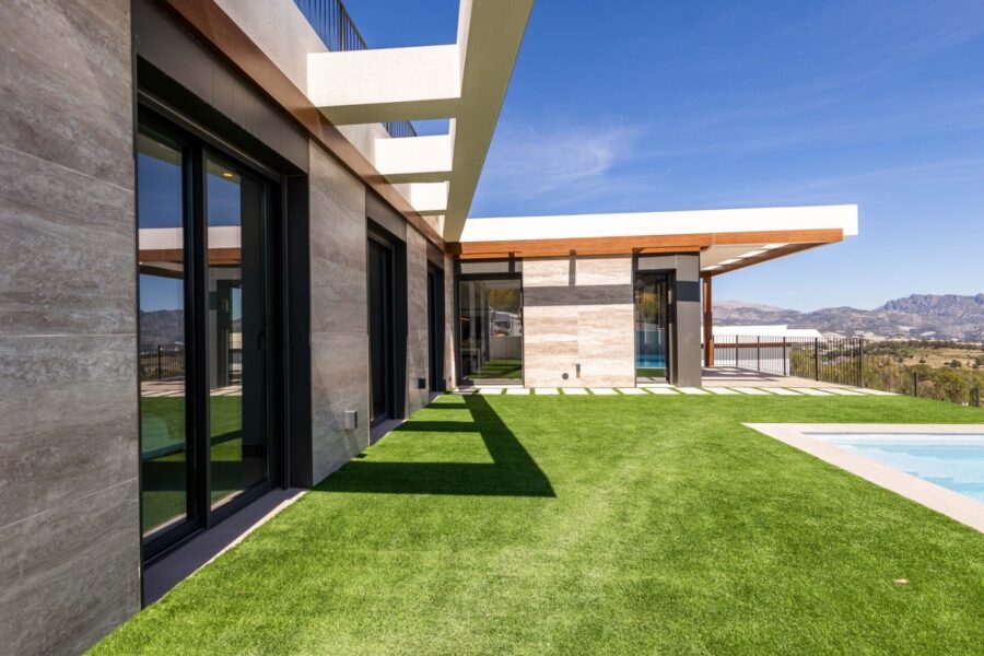 Las viviendas cuentan con amplios espacios exteriores que incluyen un jardín privado y una terraza, ideales para disfrutar del clima mediterráneo. Además, cada propiedad dispone de un solárium y una pérgola, perfectos para relajarse y disfrutar de las impresionantes vistas al mar. La presencia de una piscina privada y un jacuzzi añade un toque de lujo y confort, permitiendo disfrutar de momentos de ocio y relax en la privacidad del hogar.