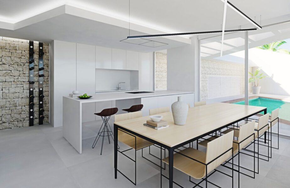 El diseño exterior de las villas en Pueblo Mascarat está pensado para maximizar el disfrute del entorno natural. Cada villa cuenta con un jardín privado, perfecto para disfrutar del aire libre en un ambiente íntimo. Las terrazas amplias ofrecen un espacio ideal para relajarse o entretener a los invitados mientras se disfruta de las vistas al mar. Además, cada propiedad dispone de una piscina privada, proporcionando un oasis personal para refrescarse en los días calurosos. La inclusión de un garaje privado asegura comodidad y seguridad para los vehículos.