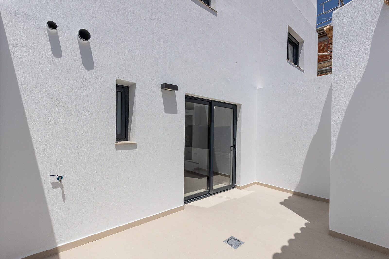 Los exteriores de estas viviendas adosadas en Rafal han sido diseñados para ofrecer un espacio de vida al aire libre que complementa el interior de las casas. Cada propiedad cuenta con una terraza privada, ideal para disfrutar de momentos de relax o para organizar reuniones familiares al aire libre. Además, las viviendas disponen de un garaje, proporcionando comodidad y seguridad para el estacionamiento de vehículos. El diseño exterior se integra armoniosamente con el entorno, ofreciendo un espacio atractivo y funcional que invita a disfrutar del clima mediterráneo durante todo el año. Las áreas ajardinadas comunitarias añaden un toque de verdor y frescura al conjunto, creando un ambiente sereno y agradable para todos los residentes.