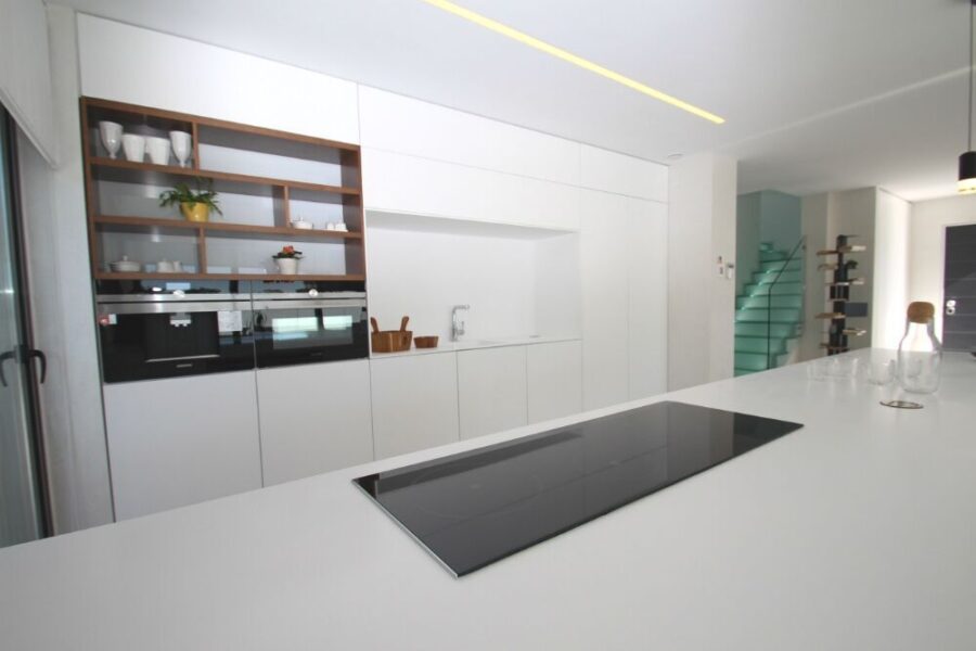 El interior de las villas está diseñado con un enfoque en la comodidad y la funcionalidad. Los suelos de cerámica aportan un toque moderno y son fáciles de mantener. Las villas están equipadas con aire acondicionado y preinstalación para asegurar un ambiente confortable durante todo el año. La cocina incluye electrodomésticos, facilitando la vida diaria desde el primer día. Los armarios empotrados ofrecen un amplio espacio de almacenamiento, manteniendo el orden y la organización. Además, el videoportero proporciona un extra de seguridad y comodidad.