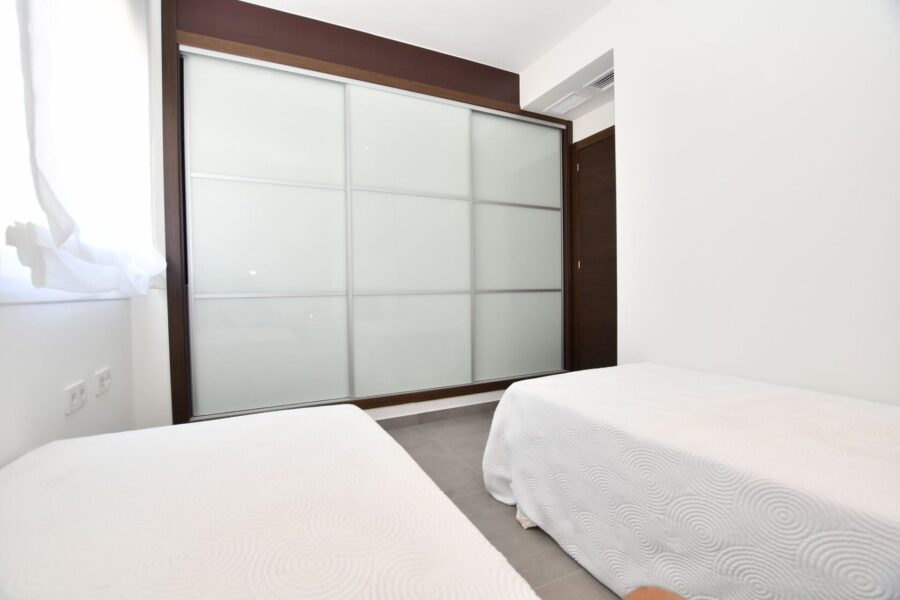 El interior de las viviendas está diseñado para ofrecer confort y modernidad. Los suelos de gres porcelánico aportan un toque de elegancia y son fáciles de mantener. Las viviendas están equipadas con armarios empotrados, proporcionando un amplio espacio de almacenamiento. La preinstalación de aire acondicionado asegura que el clima interior sea siempre agradable, mientras que el videoportero añade un nivel extra de seguridad y comodidad. La distribución de las viviendas, con dos dormitorios y dos baños, está pensada para ofrecer un espacio funcional y acogedor, adaptándose a las necesidades de sus residentes.