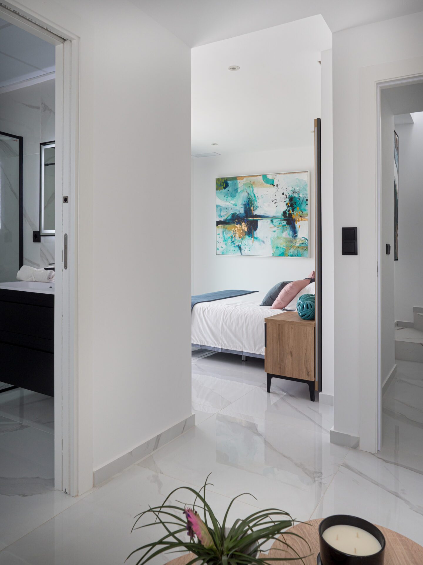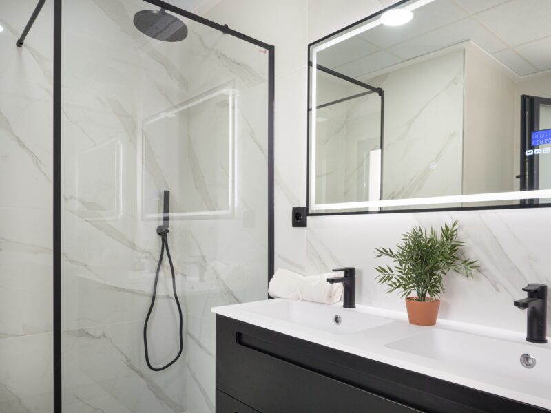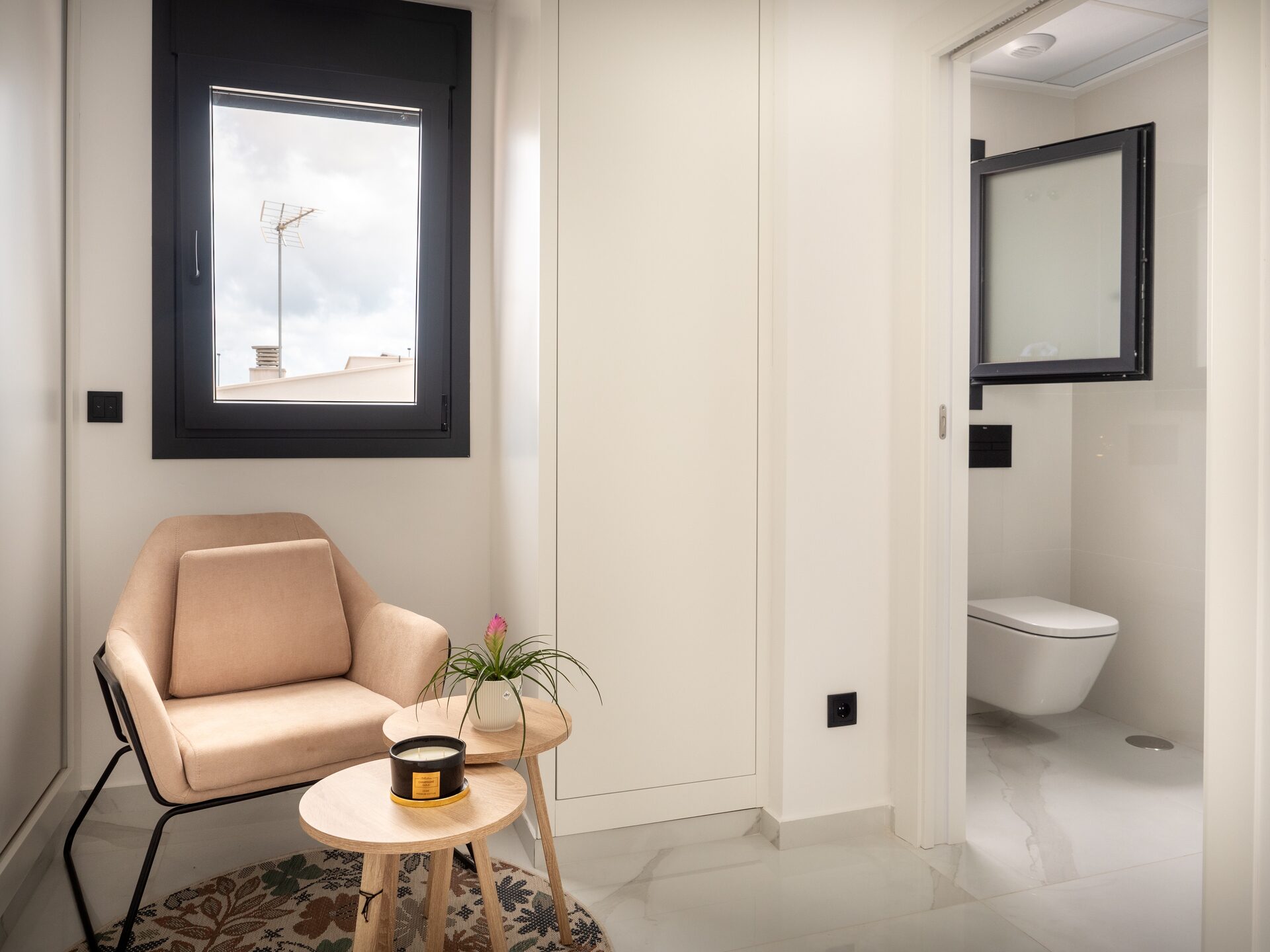 El interior de estas viviendas independientes está equipado con todas las comodidades modernas. Cuentan con tres dormitorios y tres baños, ofreciendo un espacio amplio y funcional para toda la familia. Los suelos de cerámica aportan un toque elegante y son fáciles de mantener. Las viviendas están completamente amuebladas y equipadas con electrodomésticos, lo que facilita la mudanza. Además, incluyen características como calefacción por suelo radiante, preinstalación de aire acondicionado, persianas eléctricas y un videoportero para mayor seguridad. Los armarios empotrados proporcionan un almacenamiento eficiente y ordenado.