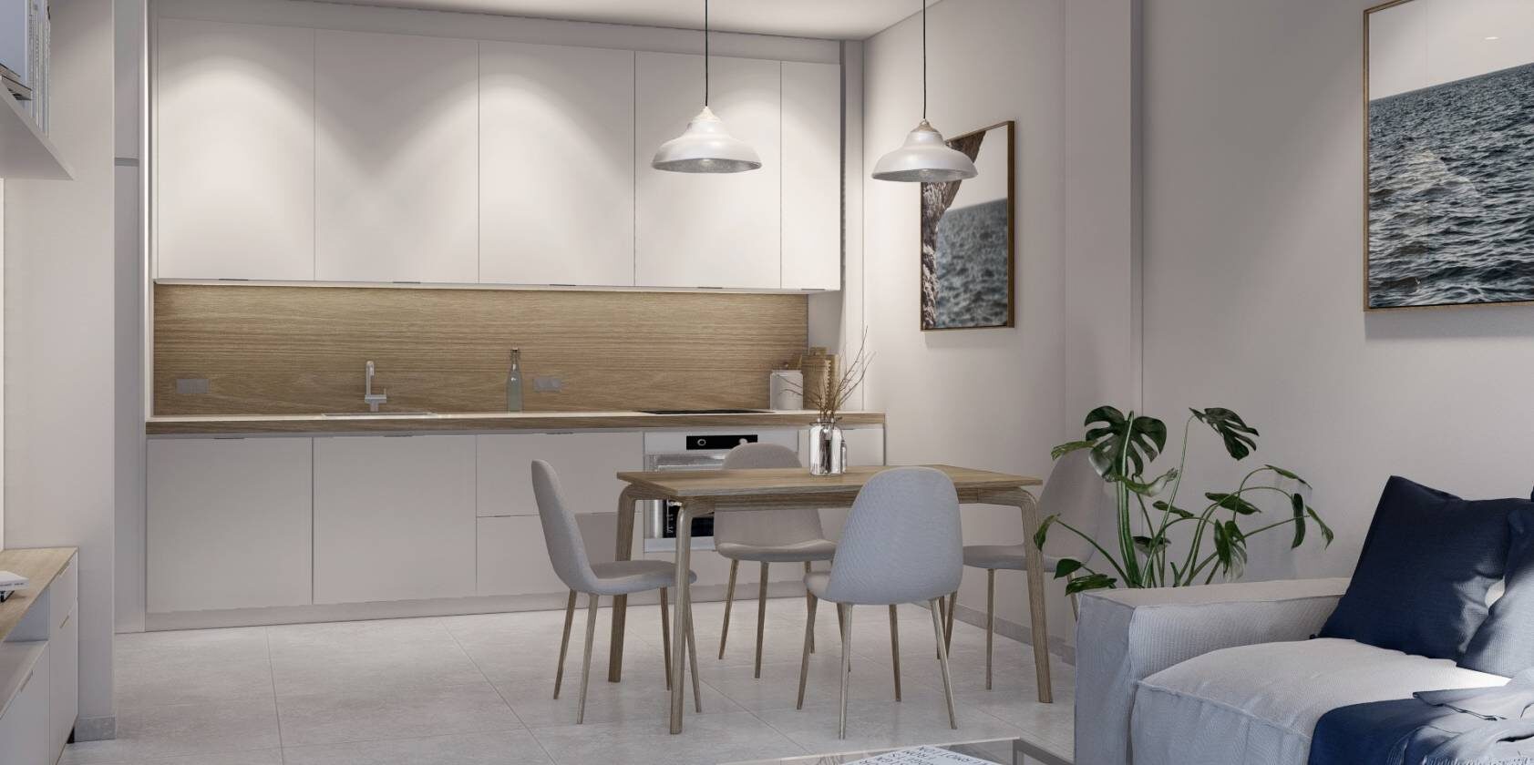 El interior de las viviendas está diseñado para ofrecer un ambiente acogedor y funcional. Los apartamentos y áticos vienen equipados con electrodomésticos modernos, facilitando las tareas diarias. Los suelos de cerámica aportan un toque elegante y son fáciles de mantener. Los armarios empotrados optimizan el espacio de almacenamiento, manteniendo el orden y la estética. Además, algunas propiedades cuentan con jacuzzi, añadiendo un toque de lujo y relajación al hogar. La distribución incluye 2 o 3 dormitorios y 2 baños, adaptándose a diferentes necesidades familiares.