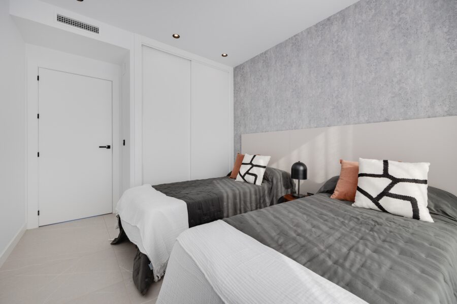 El diseño exterior de estas viviendas independientes en Torrevieja es simplemente espectacular. Cada propiedad cuenta con un jardín privado, perfecto para disfrutar de momentos al aire libre en un entorno tranquilo. La presencia de una piscina privada añade un toque de lujo, permitiendo refrescarse en los calurosos días de verano. Además, las terrazas ofrecen un espacio adicional para relajarse o entretener a los invitados, mientras que el solárium proporciona un lugar ideal para tomar el sol y disfrutar de las vistas panorámicas de la zona.