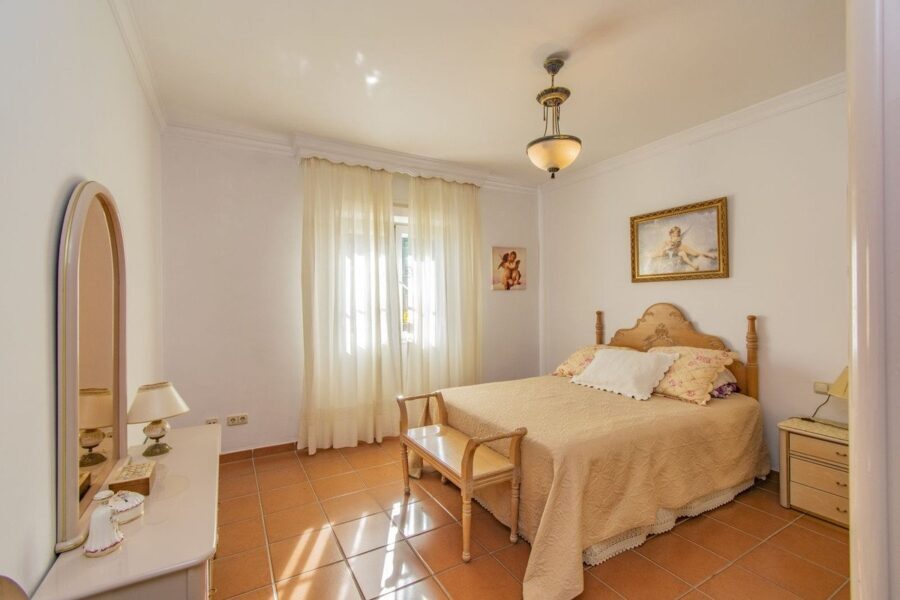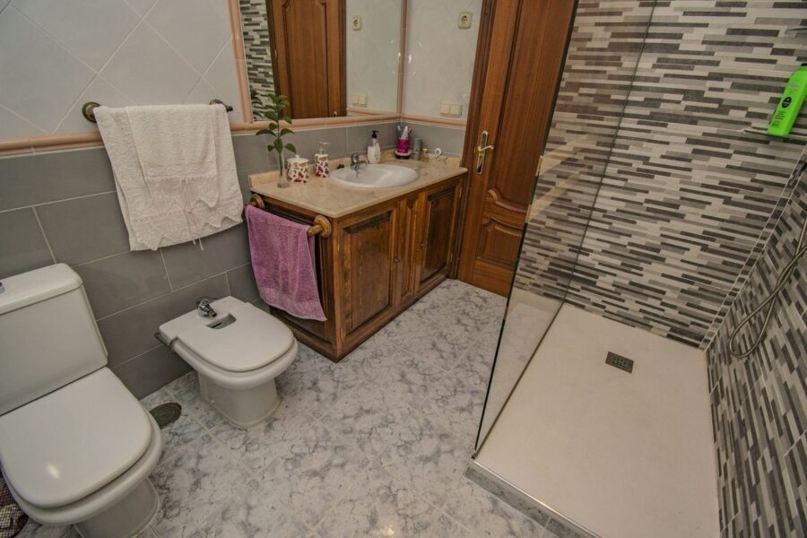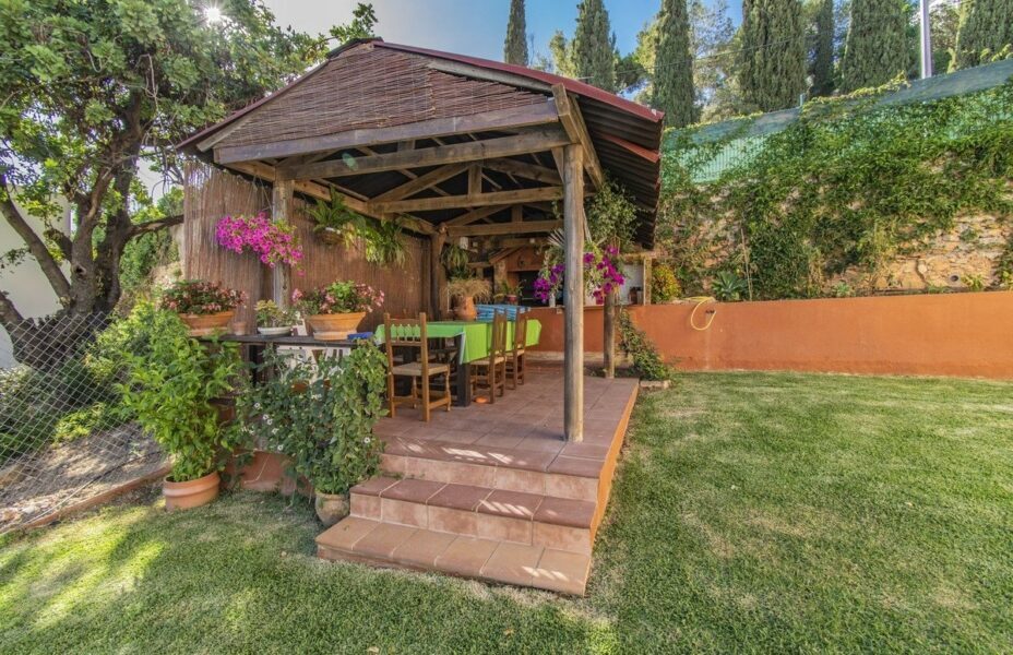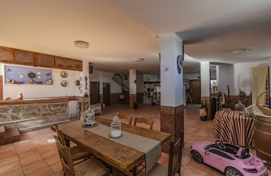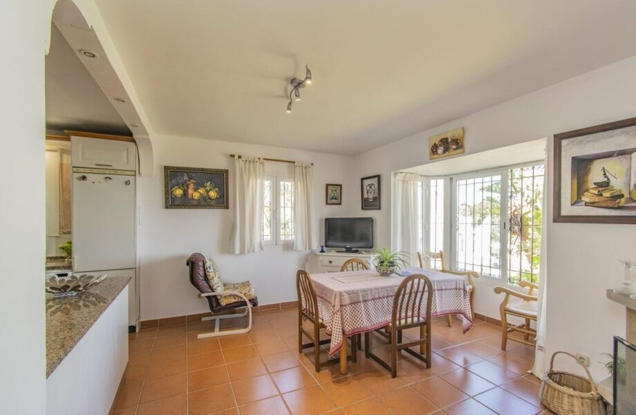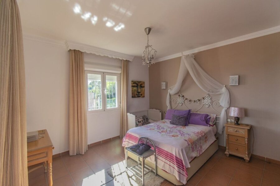 La villa cuenta con un total de cinco dormitorios y cuatro baños, lo que proporciona un amplio espacio para familias o aquellos que disfrutan de recibir invitados. La sala de estar está equipada con una acogedora chimenea, perfecta para relajarse por las tardes durante los meses más fríos, mientras que la gran cocina con comedor ofrece un espacio elegante y funcional para preparar comidas y entretenerse.